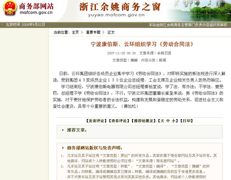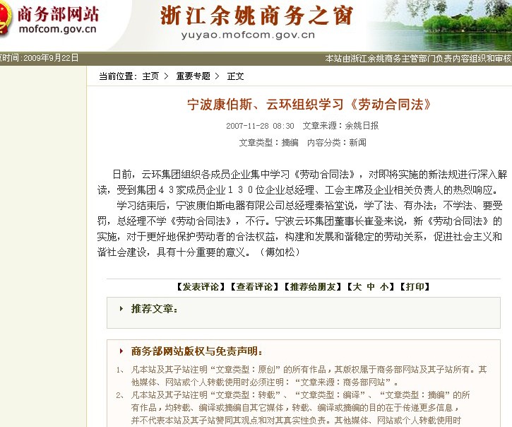 余姚市精益电子有限公司组织学习《劳动合同法》: